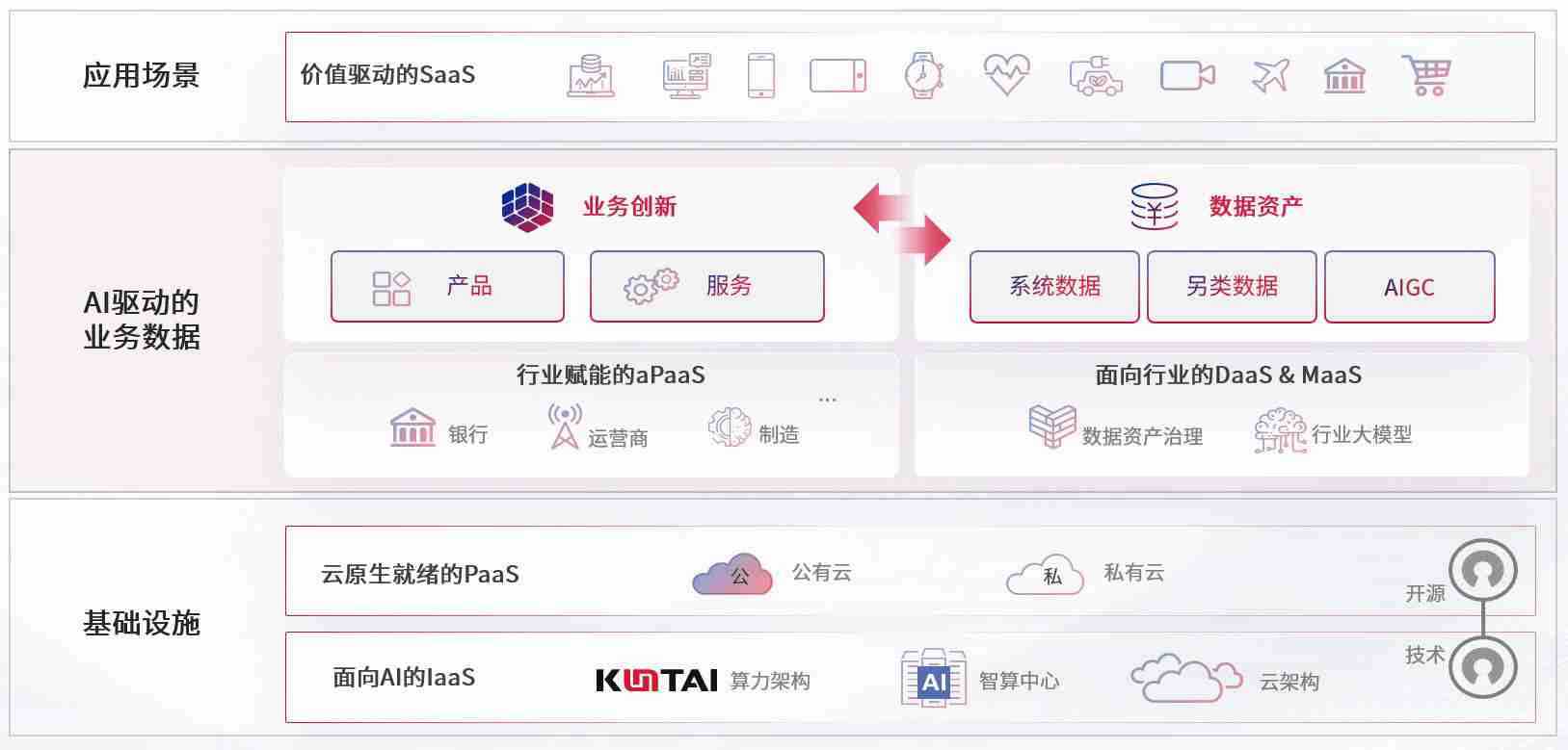数字时代,,,围绕企业数字化转型的关键要素,,快盈VIII数码开创性的提出数云融合战略和技术体系框架,,,着力在云原生、、数字原生、、、AI原生和信创产业上架构产品和服务能力,,,,为处在不同数字化转型阶段的快消零售、、汽车、、、、金融、、、医疗、、、、政企、、、、教育、、、、运营商等行业客户提供泛在的敏捷IT能力和融合的数据驱动能力,,,构建跨界融合创新的数字业务场景和新业务模式,,,,助力企业级客户建立面向未来的核心能力和竞争优势,,,,全面推动社会的数字化、、、、智能化转型升级。。