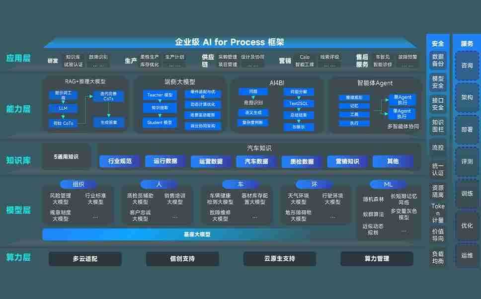 端到端的一站式AI工作空间深度融合了从企业战略规划到日常经营的全流程业务板块,,,,定向解决车企内部领域多、、、、部门多、、、链条长、、、、场景碎片化等难题,,支持车企快速构建以AI为核心的生产力写作体系,,实现任务执行与AI能力的无缝集成与交互